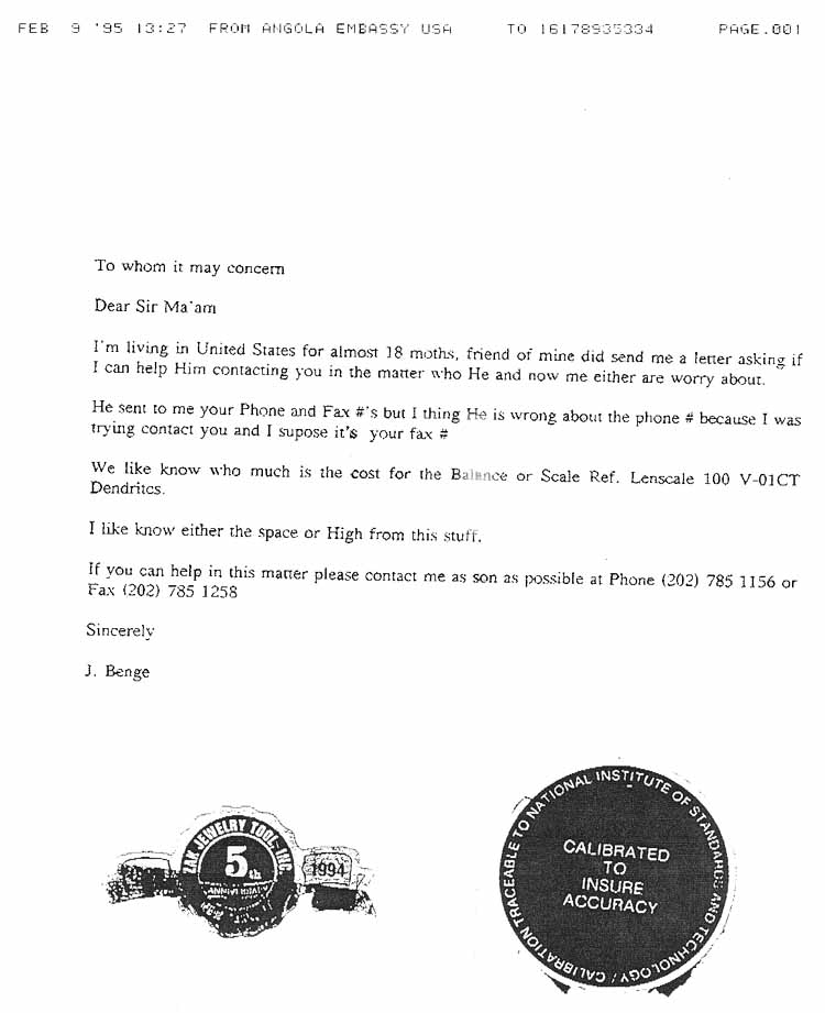 I like know either the space or High from this stuff? This came from the Angolan Embassy, or so it claims! You tell me.