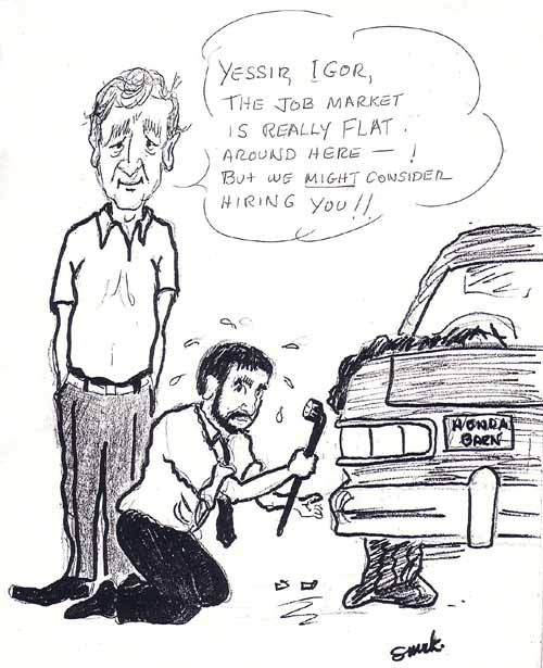 When Bill was interviewing Igor, there was a never fully described episode in which Bill's tire sprung a leak.