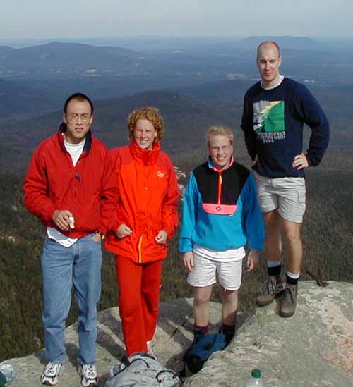 On summit of Mt. Chocorua, NH (Jamie is on far right with, from left to right, Gang (Carl) Chen, Fonnet Bleeker, Paul Konkola)