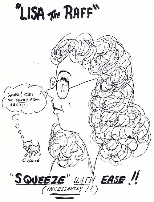 Lisa Raffonelli goes way, way, way back with Dendritics.  JB met her as an ex-sister-in-law's school chum back in 1983.  At Dendritics her card read "Dielectric Calibration Specialist", as she was the Sensor Squeeze Queen, adjusting the gaps in Gemscale 50 and Gemscale 100 sensors by tweaking the springs (and hence their capacitance, which uses the gap as a dielectric material).  She had the awesome responsibility of the food at many of our frequent birthday parties, as well as the Big Bash in April 1992.  Lisa joined the Peace Corps and there was nothing we could do, but name a robot after her and send her a politically-incorrect cartoonLisa the Robot was her replacement, also adjusting the gaps on sensors.  On more than one occasion she had to pass judgment on vendors who wanted to make sensors.  Usually badly.