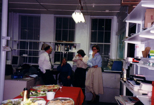 Dendritics celebrated its 10th Anniversary on April Fools day, 1992.  We assembled 10 years of misspellings from envelopes, and reassembled these into an invitation.  Some of the "Can't Come" and "Came But regretted it" replies were great.  Lisa managed the food, with a middle Eastern flavor.  I still recall it as great.